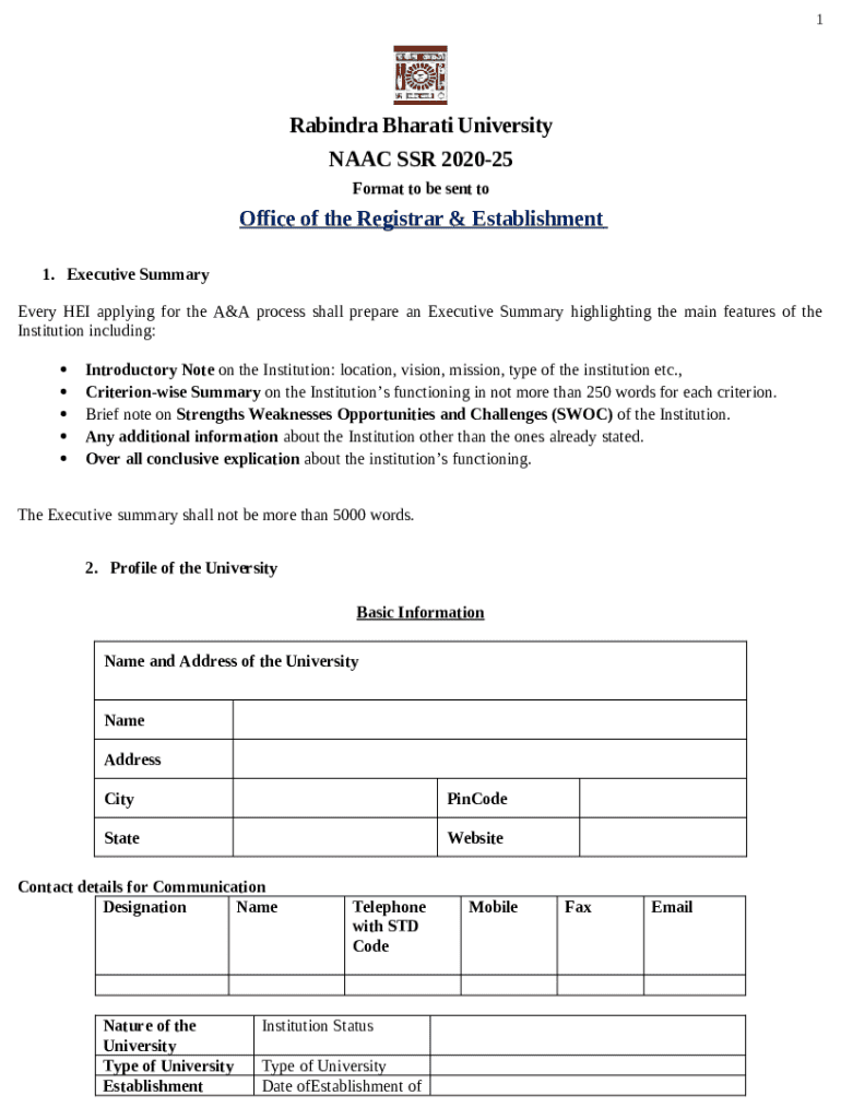 The NAAC SSR template consists of several key sections that guide institutions in providing comprehensive information about their operations. Each criterion not only assesses specific facets of institutional quality but also encourages holistic self-evaluation.