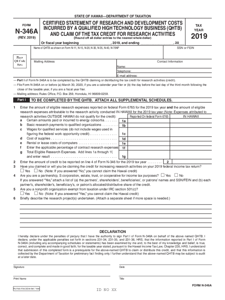 Eligibility to file the n-346a form is typically restricted to businesses that engage in qualified high-tech research activities. This includes various sectors such as software development, engineering services, and biotechnology. To determine if your business qualifies, review the IRS guidelines that define the scope of eligible R&D activities and associated expenditures.