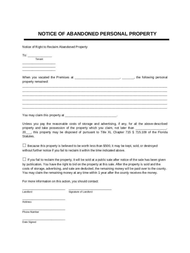Notice of Abandoned Personal Property Form: A Comprehensive How-To Guide