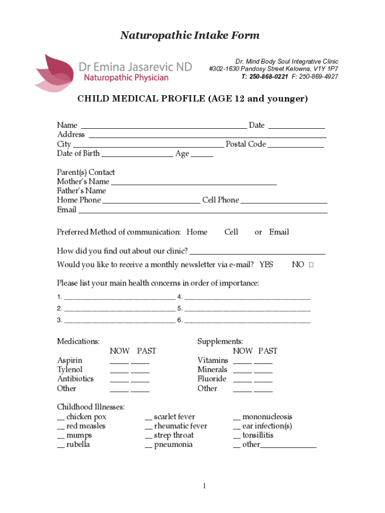 Get the free Naturopathic Intake Form
