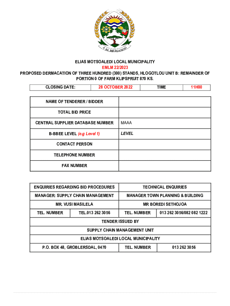 Get the free Emlm 22/2023 Tender Document