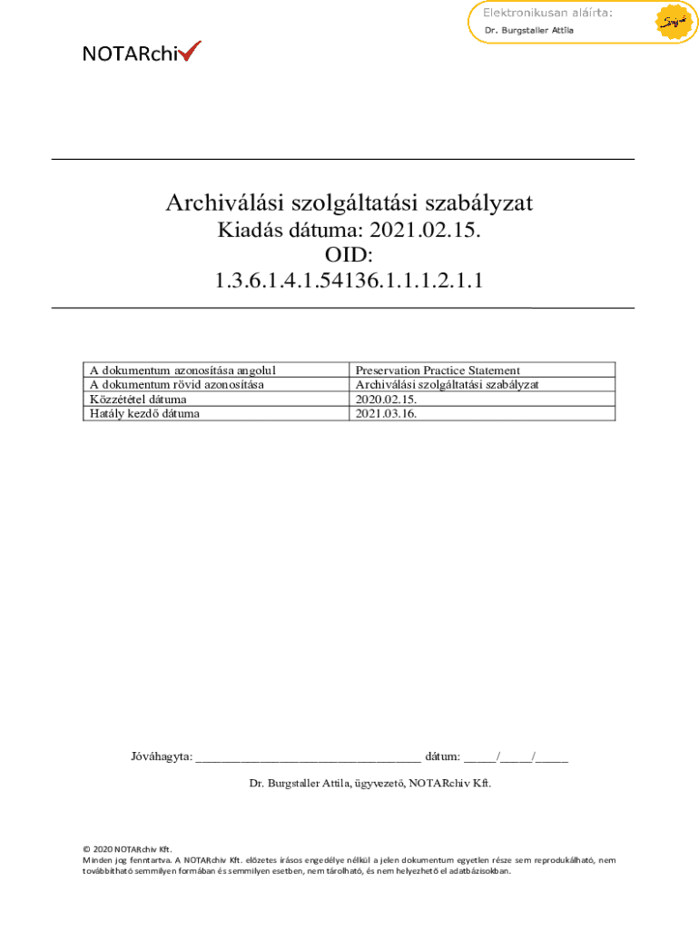 Get the free Archiválási Szolgáltatási Szabályzat