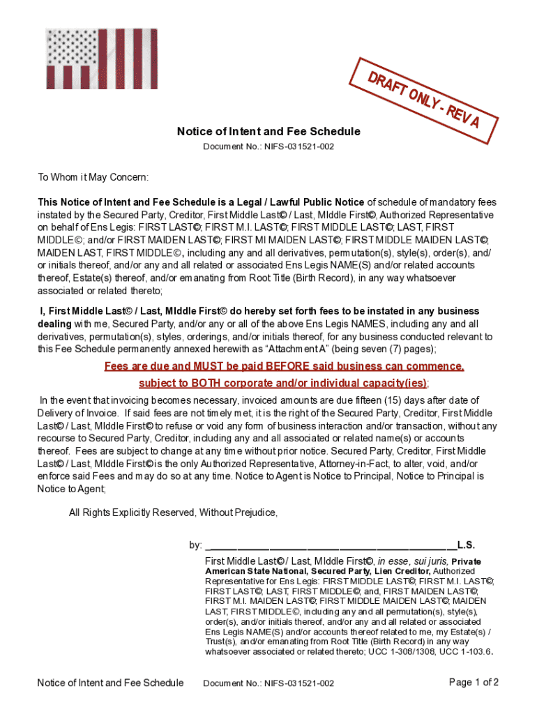 Get the free Notice of Intent and Fee Schedule