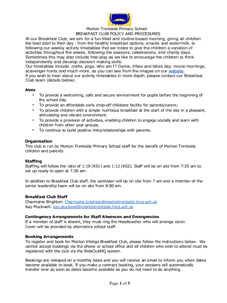 Get the free Breakfast Club Policy and Procedures