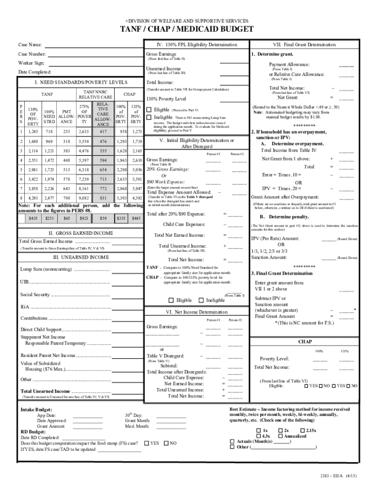 The information reported on your TANF Chap Medicaid budget form directly impacts your eligibility for support programs. Upon review, budget analysts will determine your qualification status based on the income and allowable expenses reported. Consequently, discrepancies or inaccuracies in reporting can result in delays or denials of benefits.