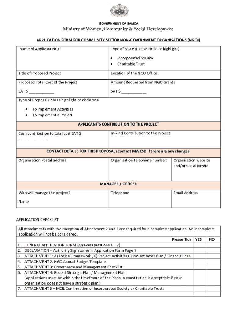 Get the free Application Form for Community Sector Non-government Organisations (ngos) - mwcsd gov