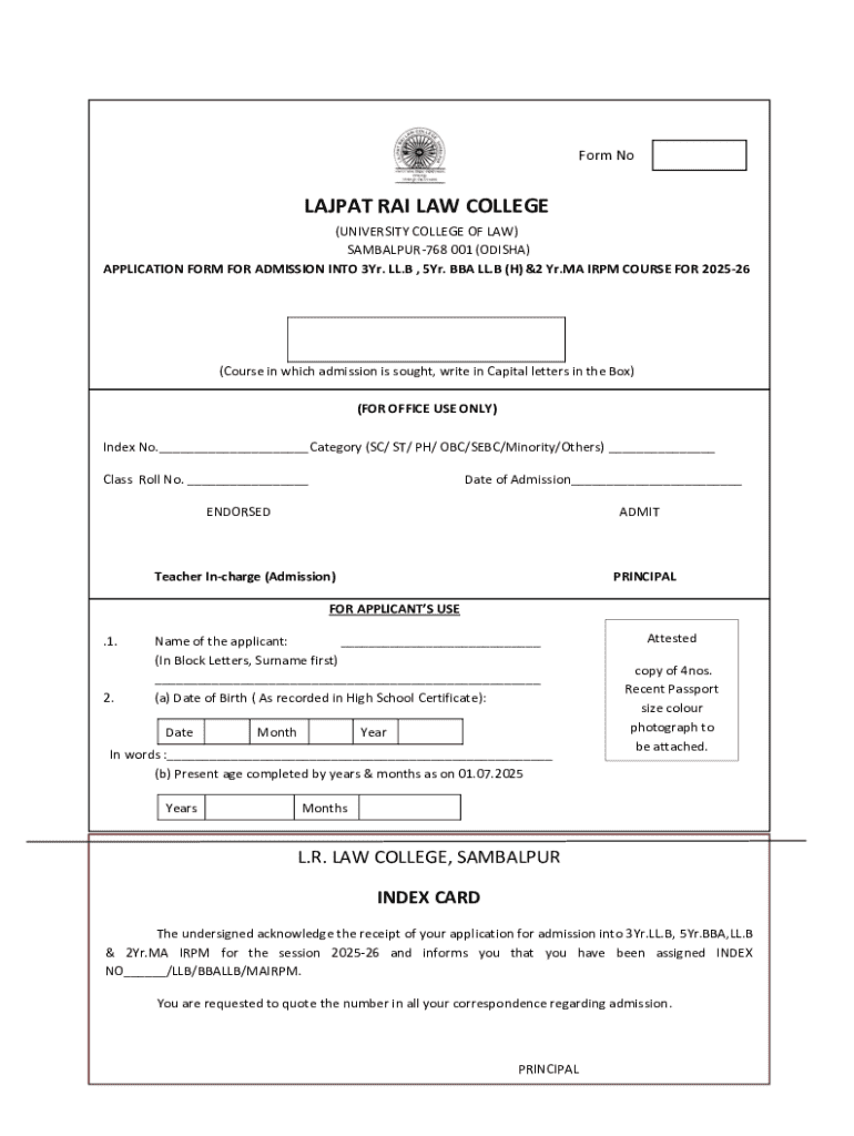 Get the free Application Form for Admission Into 3yr. Ll.b, 5yr. Bba Ll.b (h) & 2 Yr.ma Irpm Cour...
