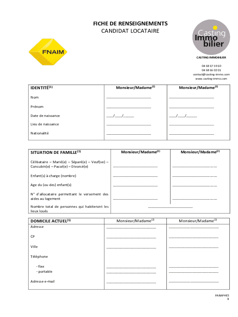 Obtenir le gratuit Fiche De Renseignements Candidat Locataire