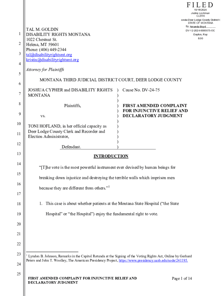 Get the free JOSHUA CYPHER and DISABILITY RIGHTS MONTANA v. ...