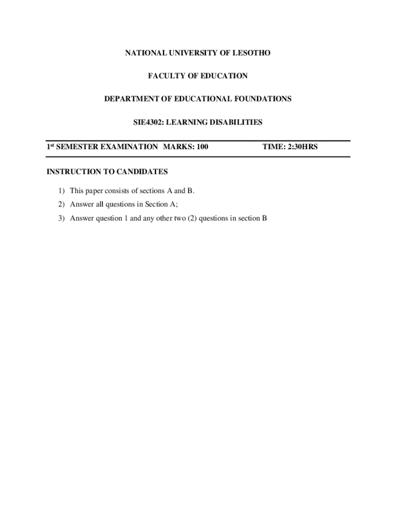 Get the free National University of Lesotho 1st Semester Examination