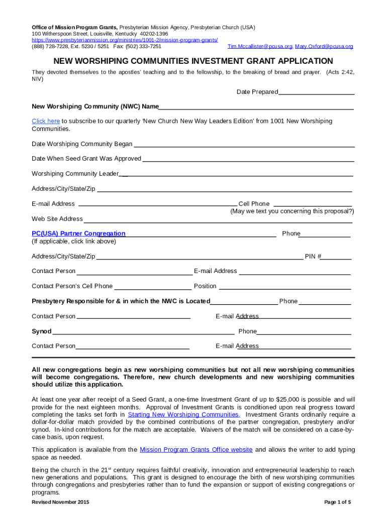 The new worshiping communities investment form is a crucial tool designed to assist emerging congregations and revitalization efforts in securing necessary funding. This form facilitates the evaluation of innovative faith-based projects aimed at deepening community engagement and expanding spiritual outreach. The significance of funding for new worshiping communities cannot be overstated, as these financial resources often serve as a lifeline to nurture growth, support leadership, and build sustainable initiatives.