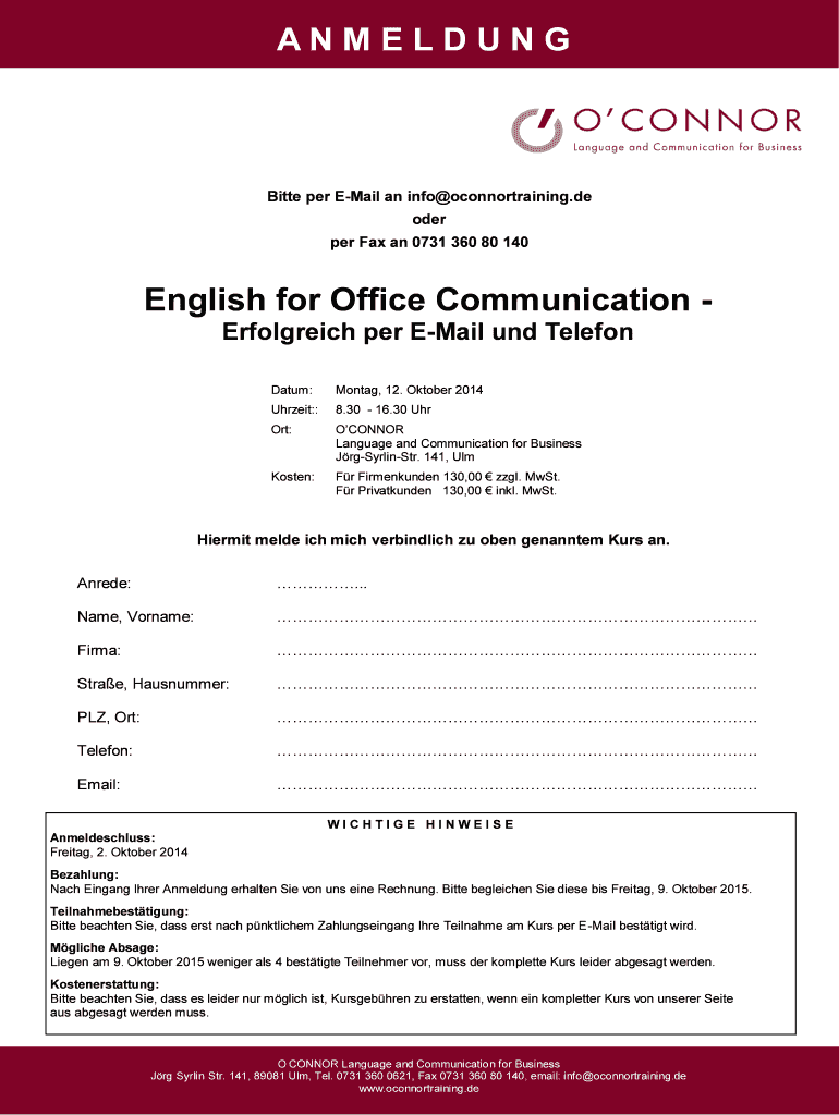English for Office Communication 1Tages Seminar ICR Dozen Andy Lead, erfolgreicher Business English Trainer UND Geschftsfhrer von O'Connor, trainer sat BER 20 Warren Manager UND Fachpersonal her Deutsche