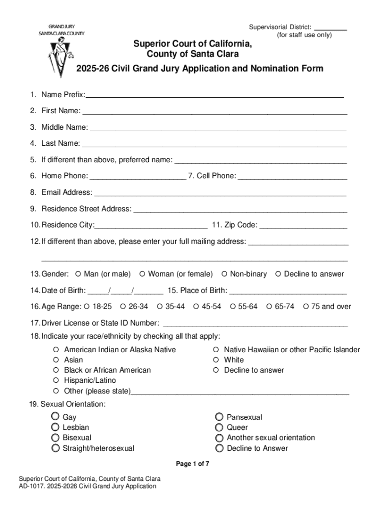 CA AD-1017 - County of Santa Clara 2025-2026 free printable template