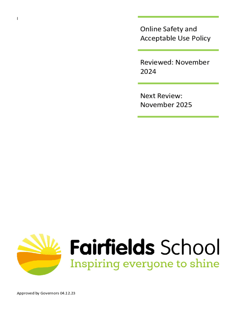 Get the free Online Safety and Acceptable Use Policy. Reviewed - fairfields northants sch