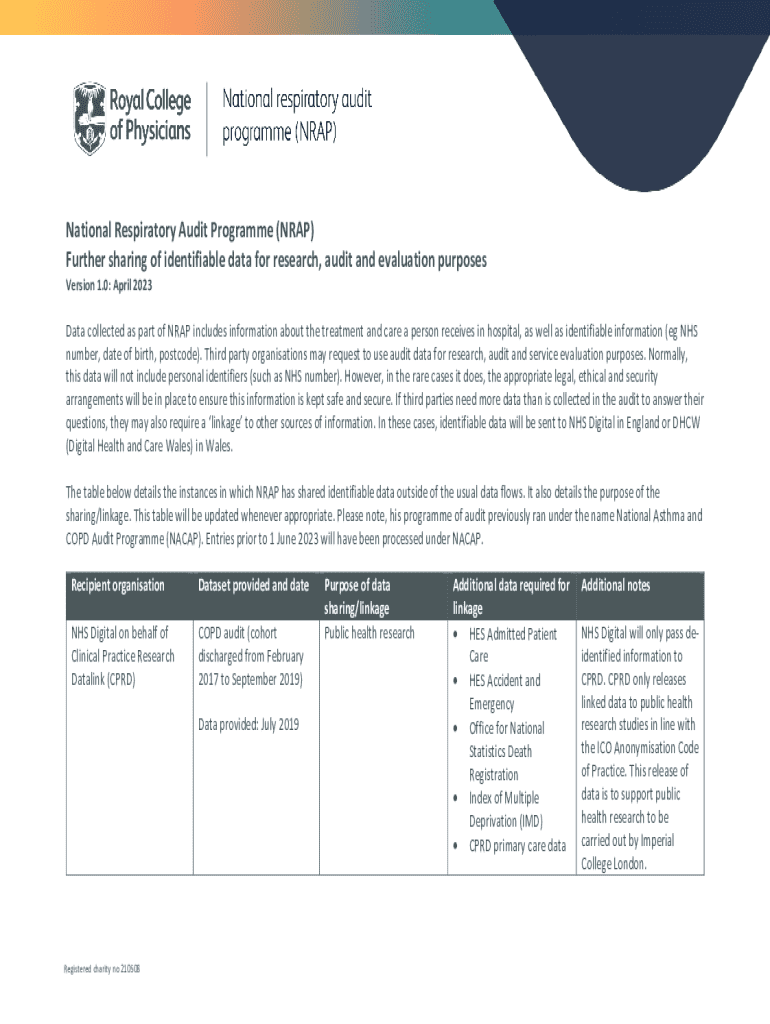 Get the free National Respiratory Audit Programme (nrap)