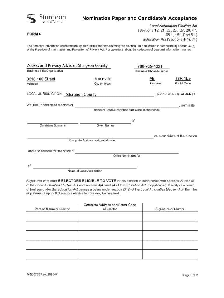 A complete nomination paper contains critical information about the candidate, commencing with their name, address, and contact details. Accurate information is essential for the verification process and ensures that all provided data corresponds to existing voter records. Each signature collected must be from registered voters in the same electoral district, validating the candidate's support.