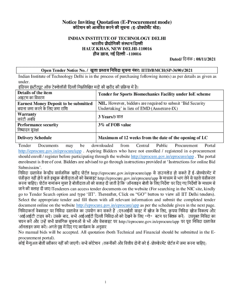 Get the free Notice Inviting Quotation (e-procurement Mode)