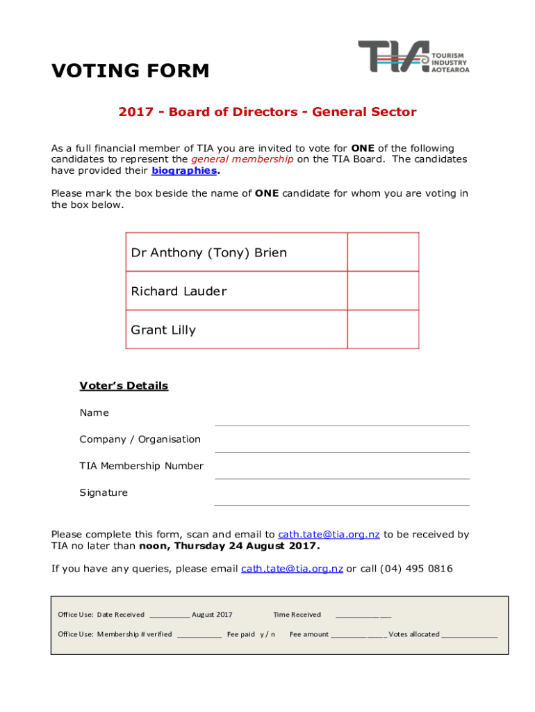 Accurate completion of these voting forms is imperative. Errors can lead to disqualification, undermining the fair election process that is essential in a democratic society.