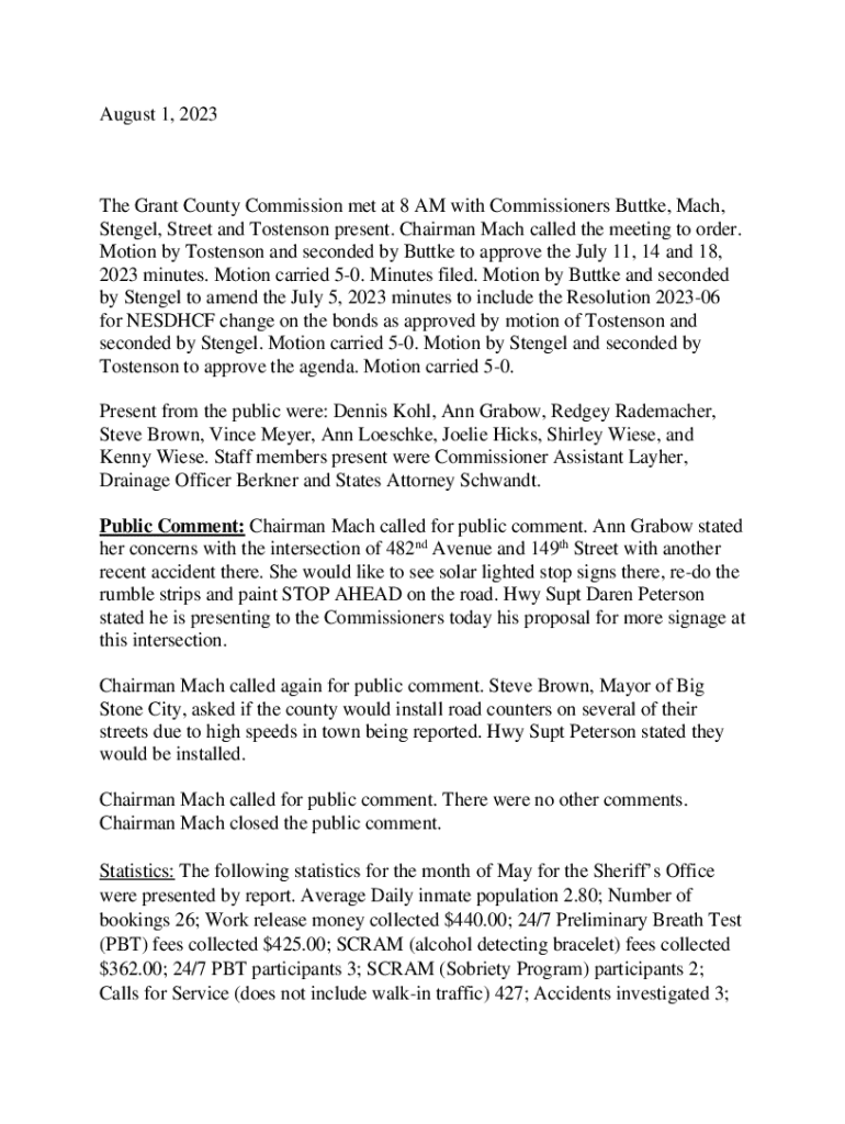 Get the free The Grant County Commission met at 8 AM with Commissioners Buttke, Mach,