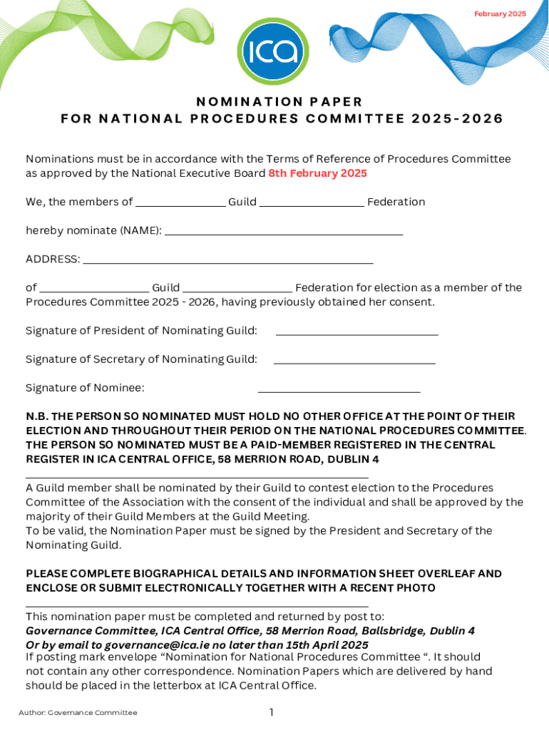 Get the free Nomination Paper for National Procedures Committee 2025-2026