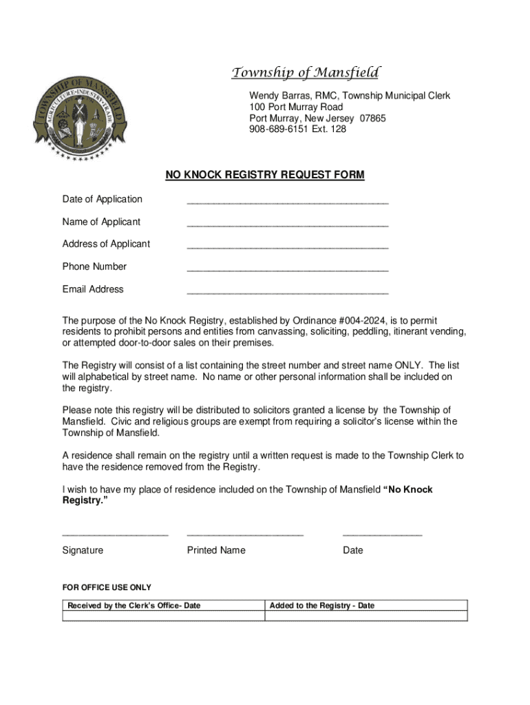No Knock Registry Request Form - A Comprehensive Guide