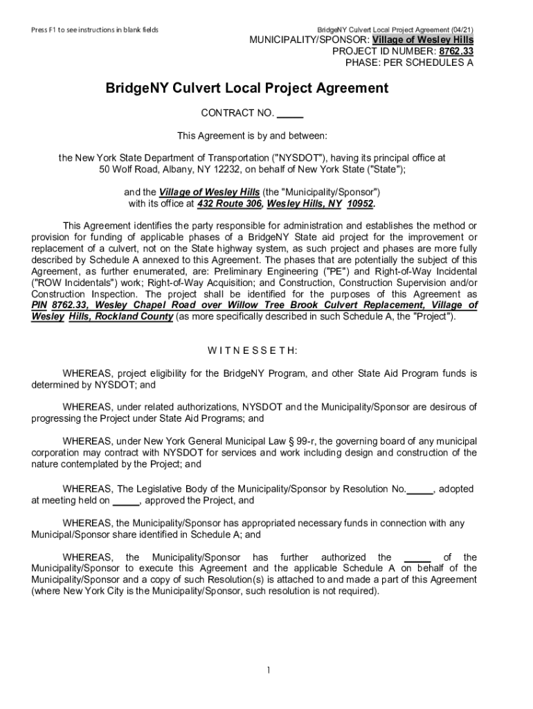 Get the free Bridgeny Culvert Local Project Agreement (04/21)