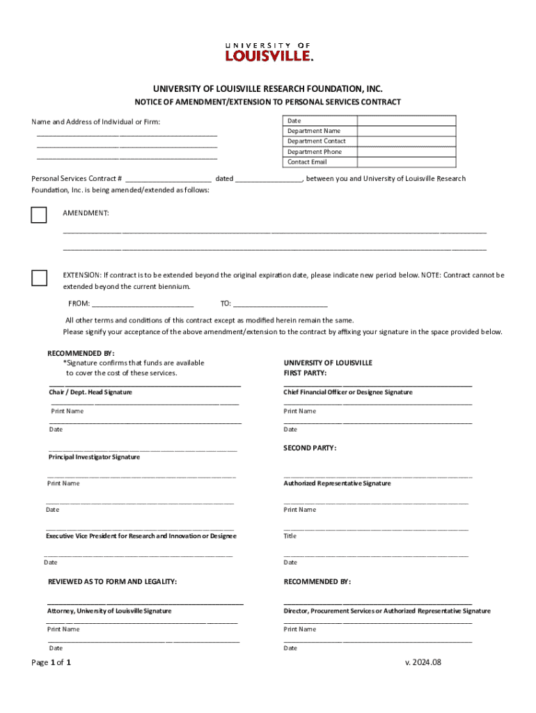 Get the free Notice of Amendment/extension to Personal Services Contract