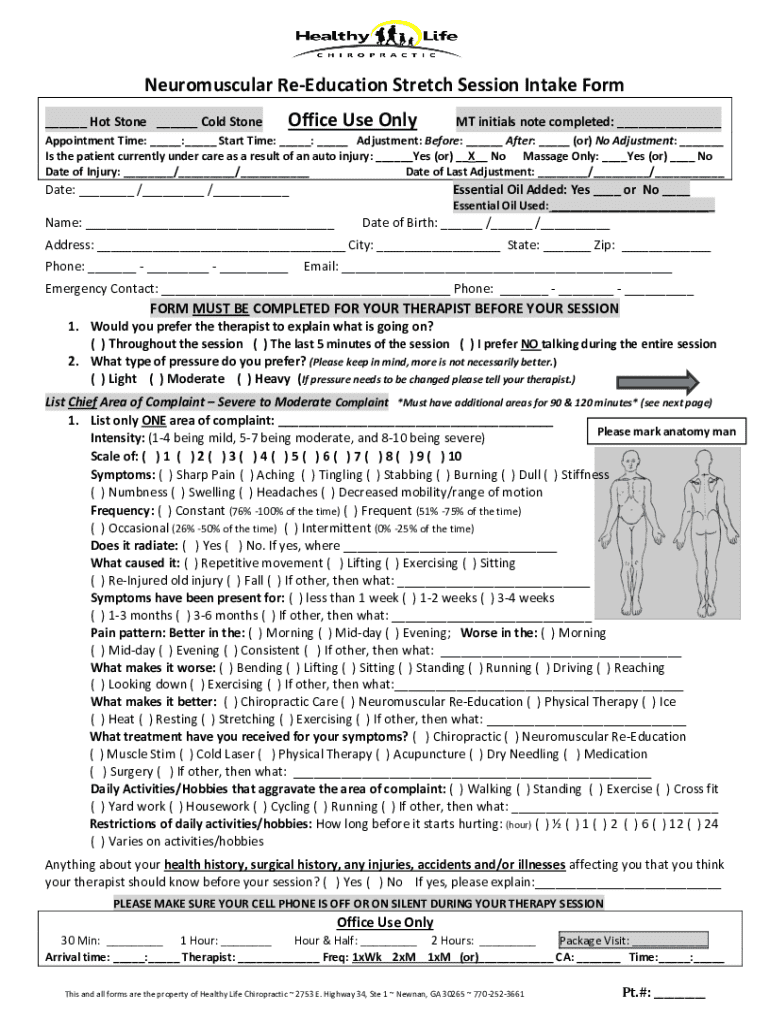 Get the free Neuromuscular Re-education Stretch Session Intake Form