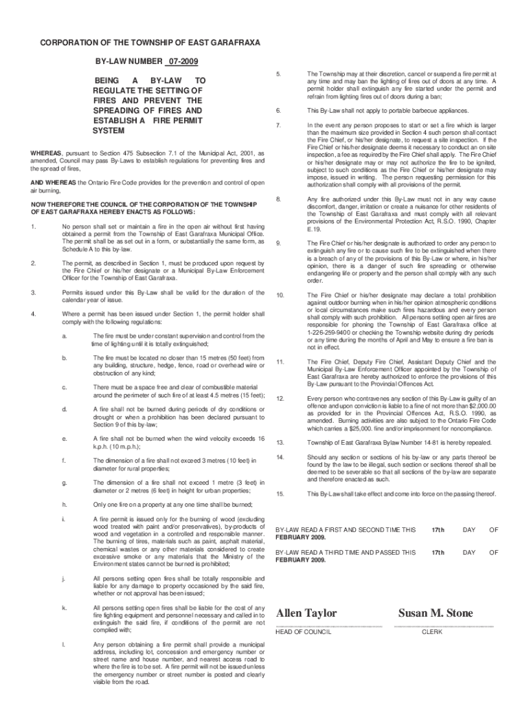 By-Law Number 07-2009 encompasses a set of provisions designed to define acceptable practices within the community. Key features include guidelines on land usage, noise regulations, and environmental considerations, ensuring that residents can enjoy their properties without infringing on the rights of others.