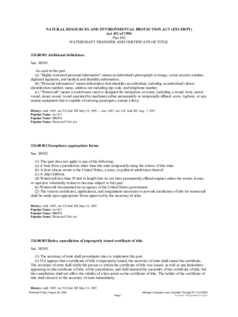 Get the free Natural Resources and Environmental Protection Act (excerpt) - capitol legislature mi