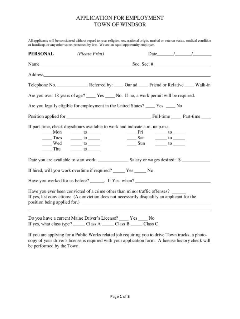 Get the free Application for Employment - windsor maine
