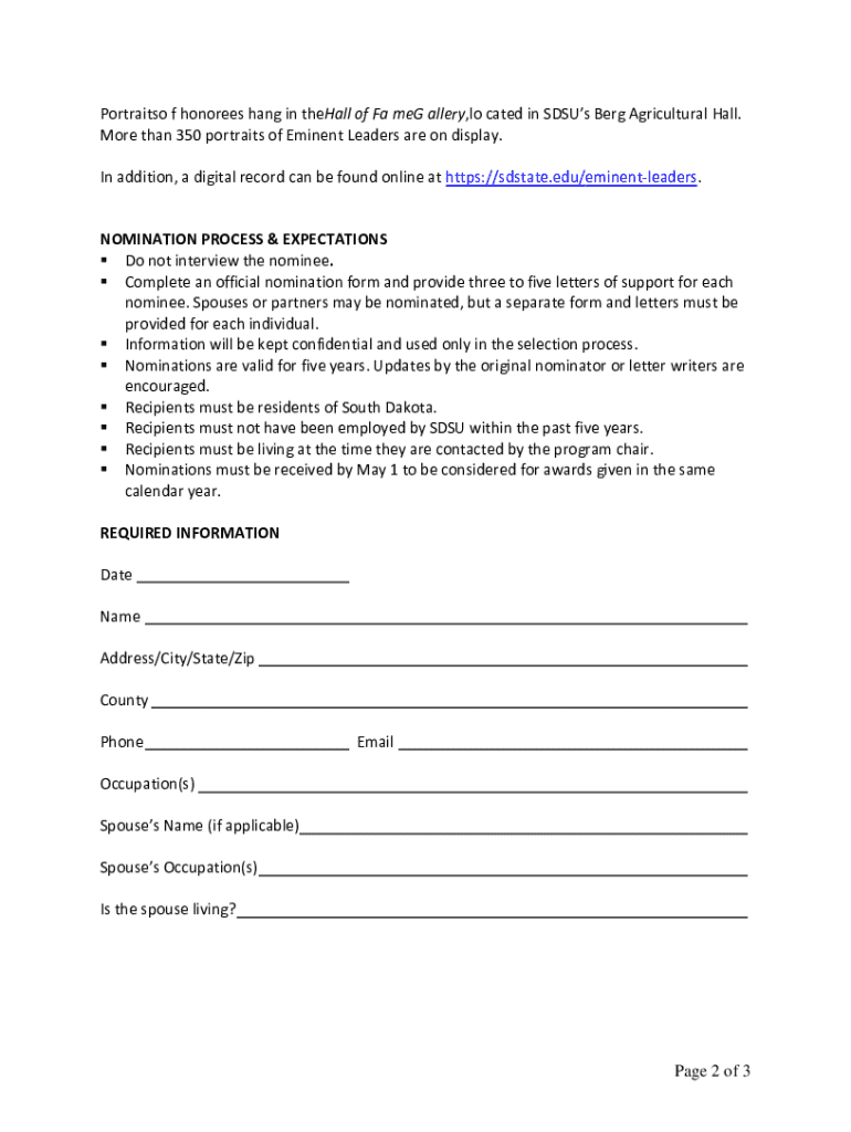 Properly completing the nomination form is crucial for ensuring that candidates are accurately represented. The form is divided into four main sections to gather pertinent information about the nominee.