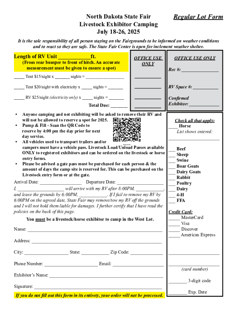 Get the free North Dakota State Fair Livestock Exhibitor Camping