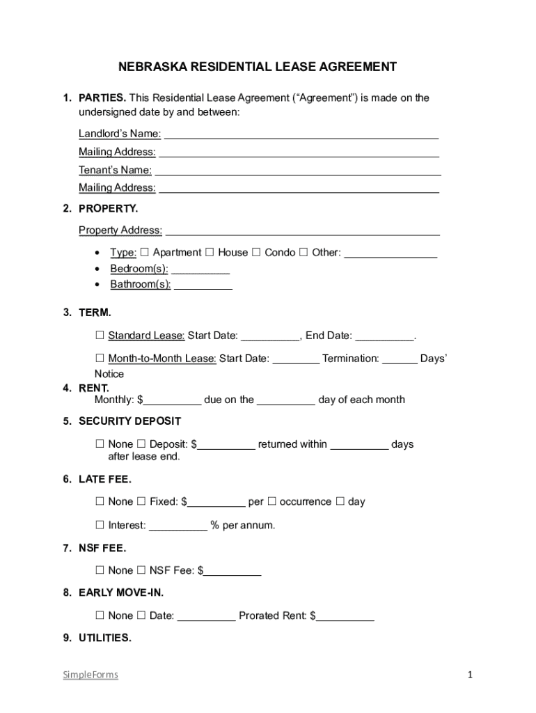Get the free Nebraska Residential Lease Agreement