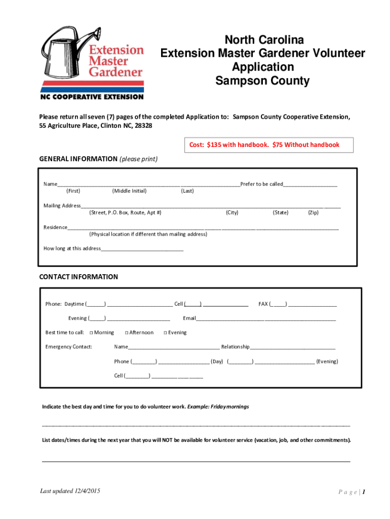 Get the free North Carolina Extension Master Gardener Volunteer Application - sampson ces ncsu