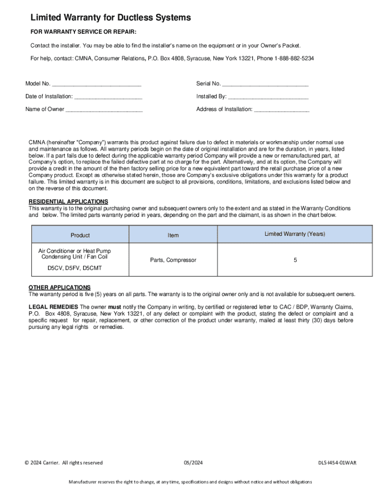 To enjoy the benefits of your limited warranty for ductless systems, you must ensure it is valid. Start by verifying the purchase date and keeping copies of all necessary documentation, such as receipts and warranty forms.