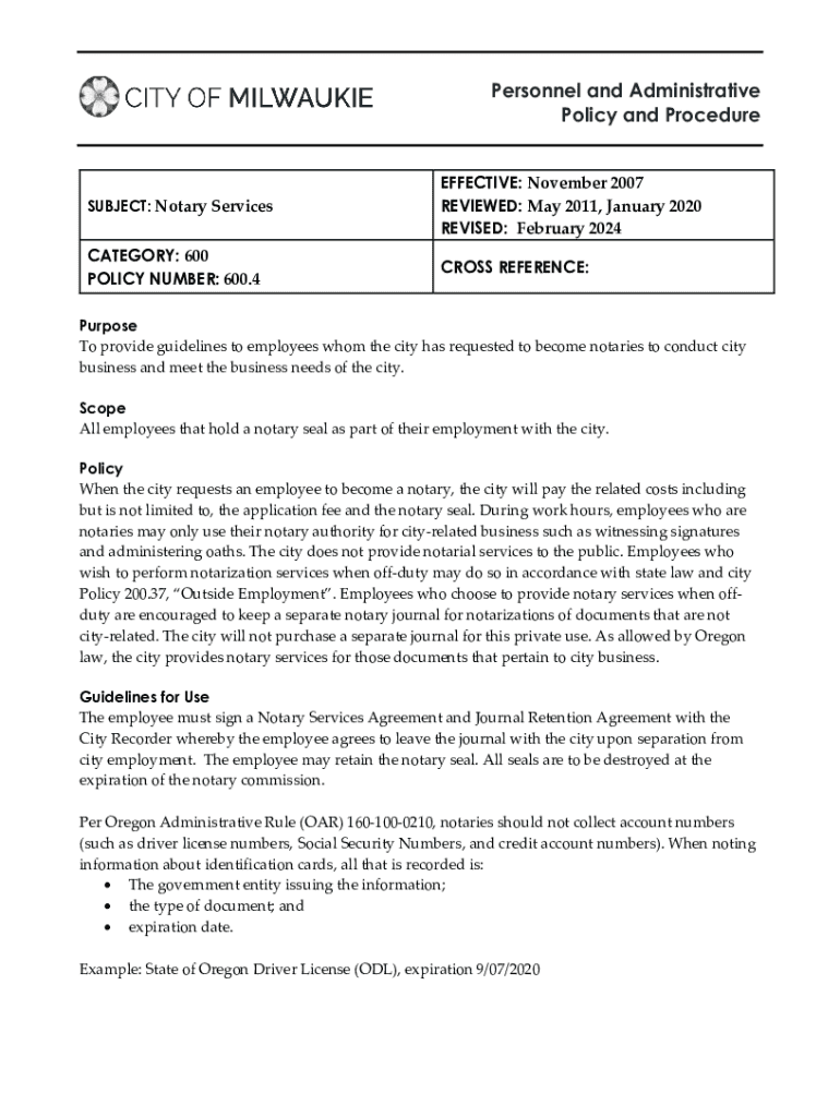 Get the free Notary Services Policy and Procedure