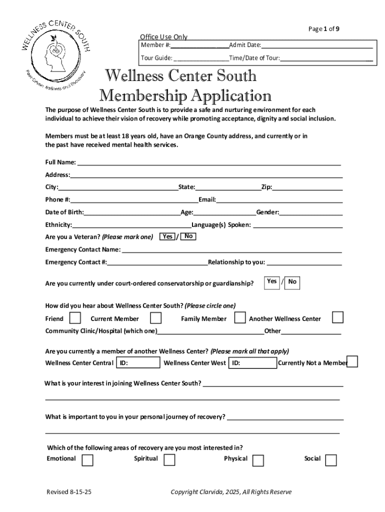 The Wellness Center South membership form plays a crucial role in the admission process. This form not only helps streamline your enrollment into the center but also serves to collect important information that aligns with your health and fitness journey.