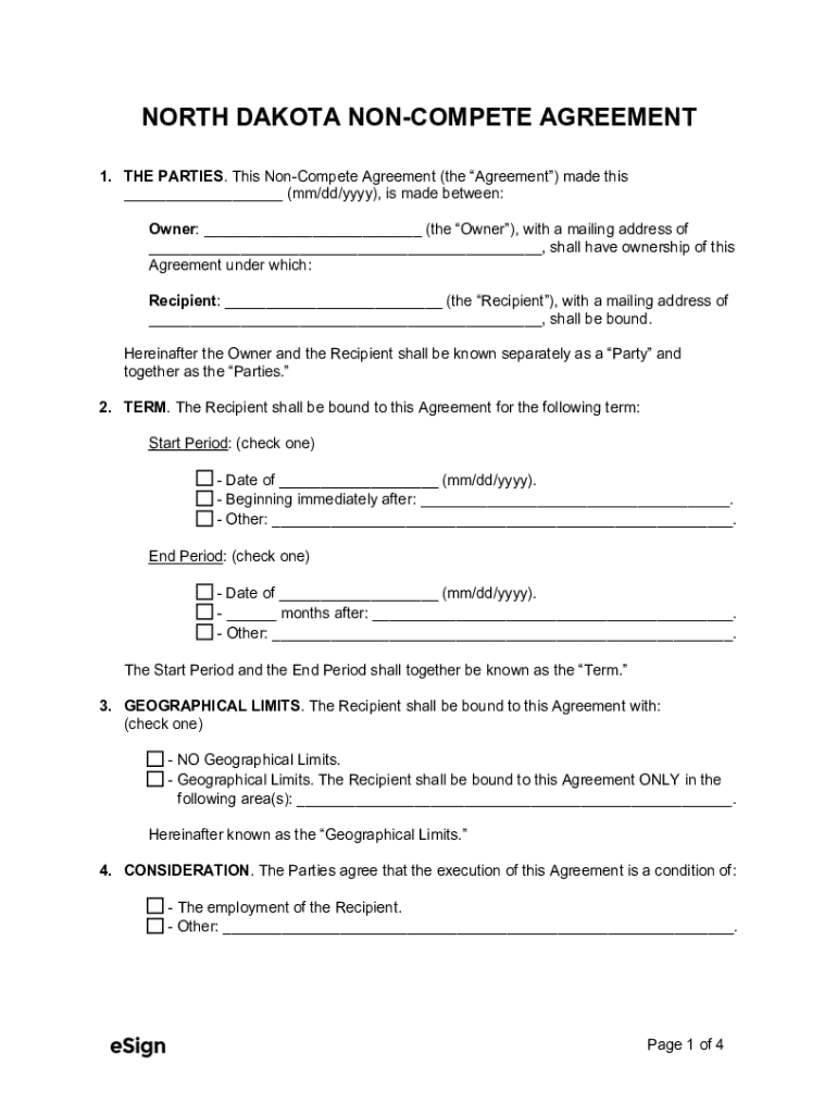 Non-compete agreements are contracts that restrict employees from entering into competition with an employer after their employment ends. These agreements serve a crucial purpose: protecting the employer's business interests. In North Dakota, non-compete agreements are not inherently illegal, but their enforceability depends on various factors, including their reasonableness and the legitimate interests they aim to protect.