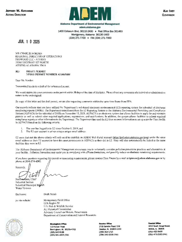 Get the free Npdes Permit Application - adem alabama