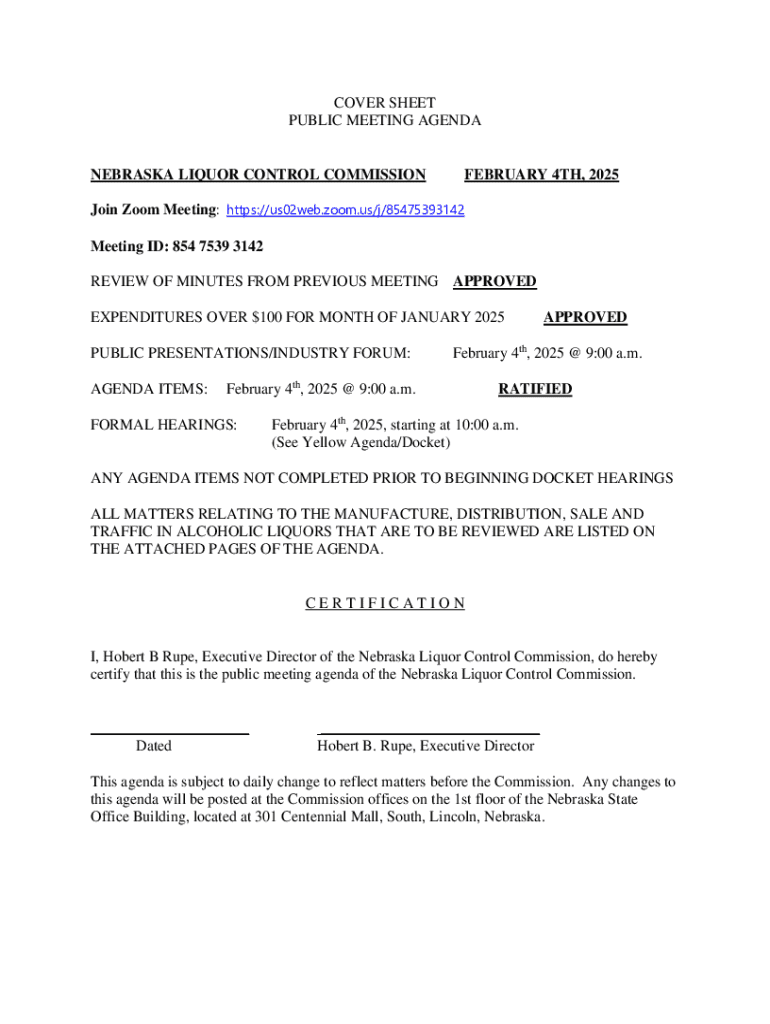 Get the free Nebraska Liquor Control Commission Public Meeting Agenda