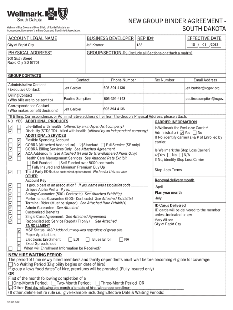 Get the free New Group Binder Agreement South Dakota - archive rcgov