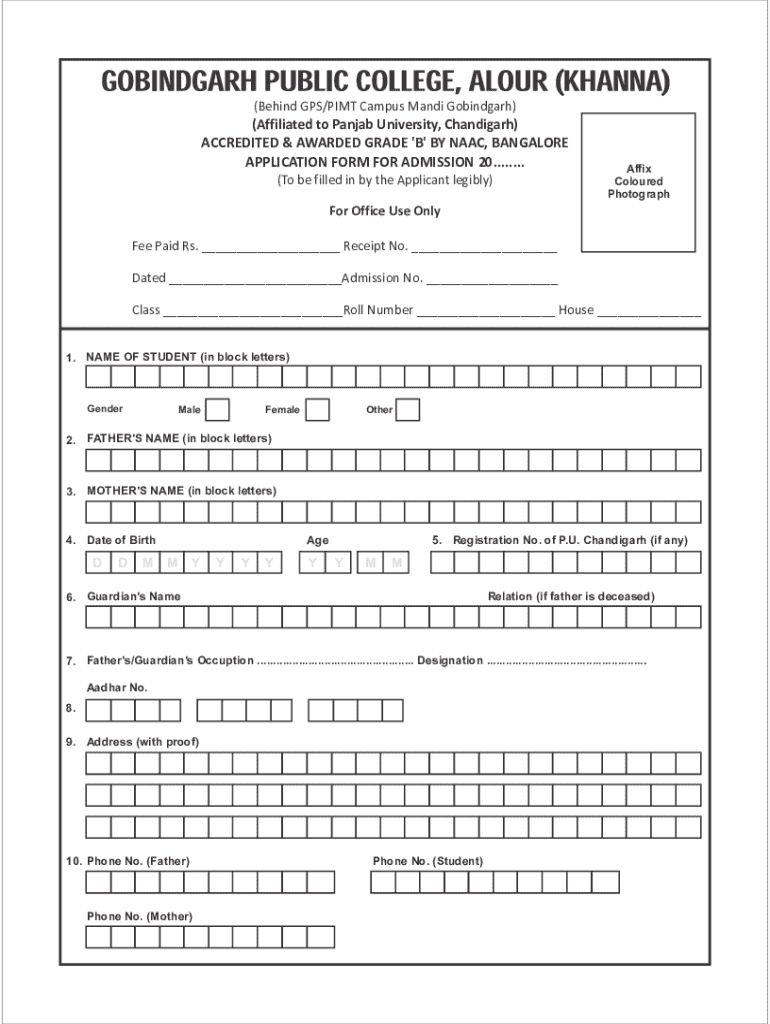 Get the free Application Form for Admission 20........