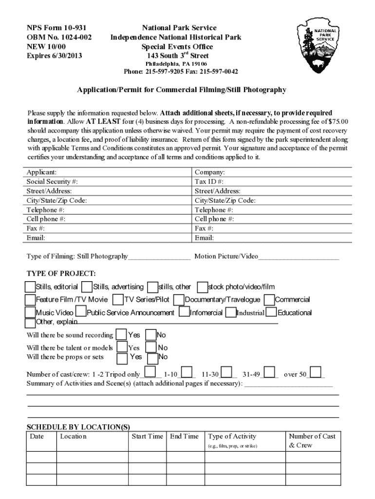 NPS Form 10-931 is a crucial document designed to facilitate various permit applications for activities taking place in national parks and other federal lands. Its purpose revolves around regulating filming, photography, and other operations that might affect natural or cultural resources within these protected areas. The importance of this form cannot be overstated, as it ensures compliance with NPS regulations and helps safeguard the ecological integrity of the areas involved.