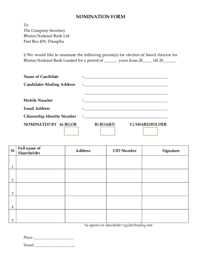 Get the free Nomination Form