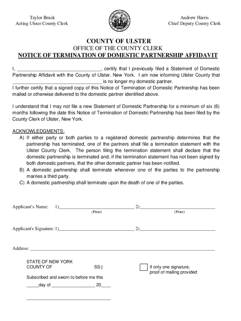 Get the free Notice of Termination of Domestic Partnership Affidavit