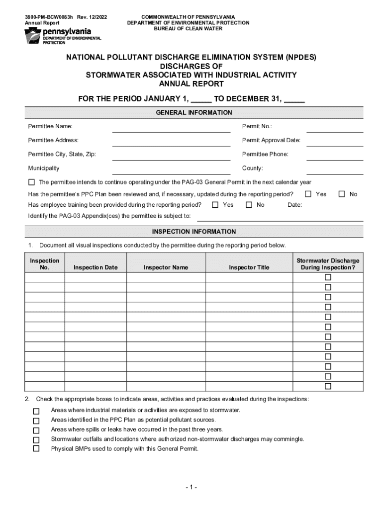 This document serves as the annual report for the National Pollutant Discharge Elimination System (NPDES) related to stormwater discharges associated with industrial activity in Pennsylvania.