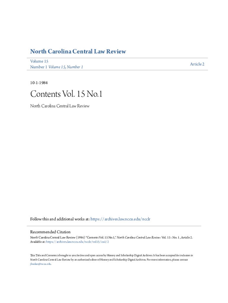Get the free North Carolina Central Law Review