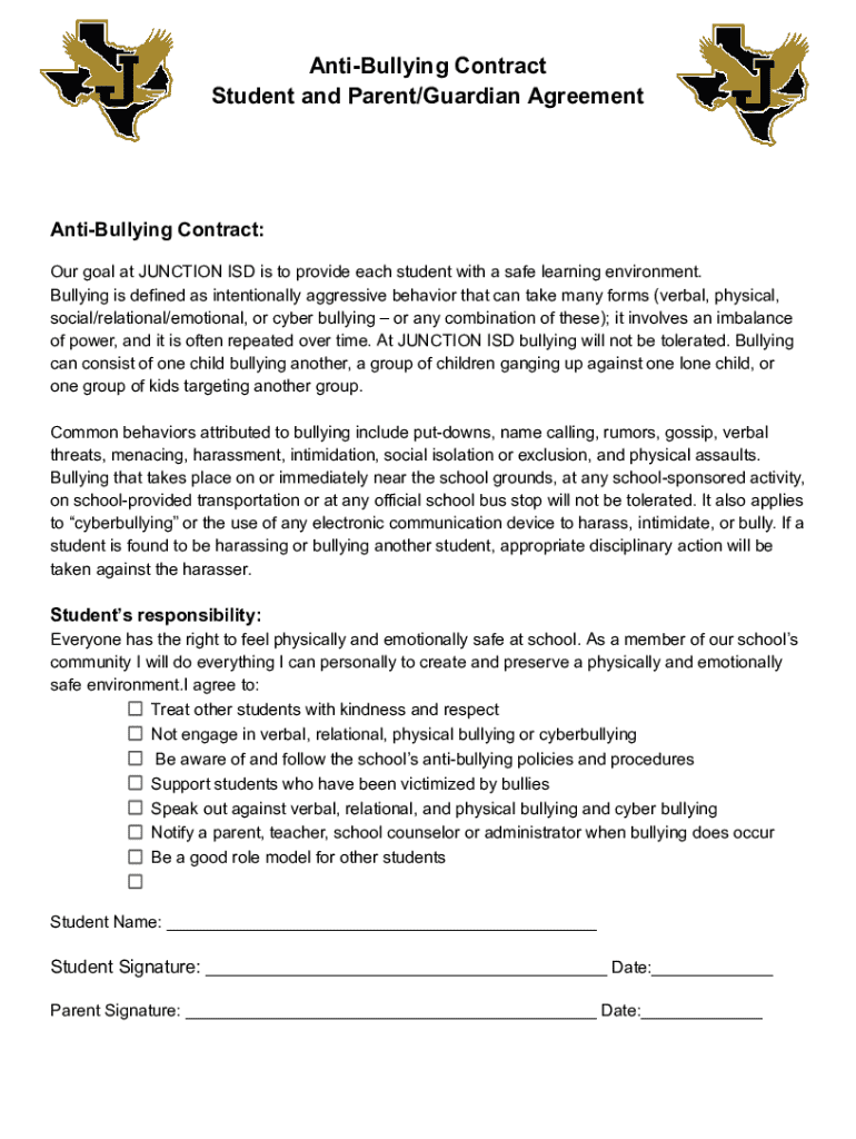 Get the free Anti-bullying Contract