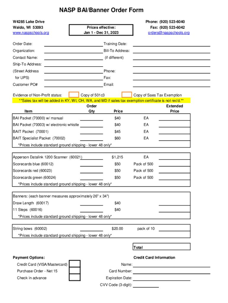 Step-by-step guide to completing the NASP Baibanner Order Form
